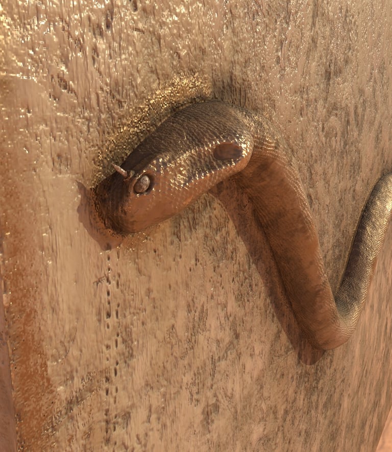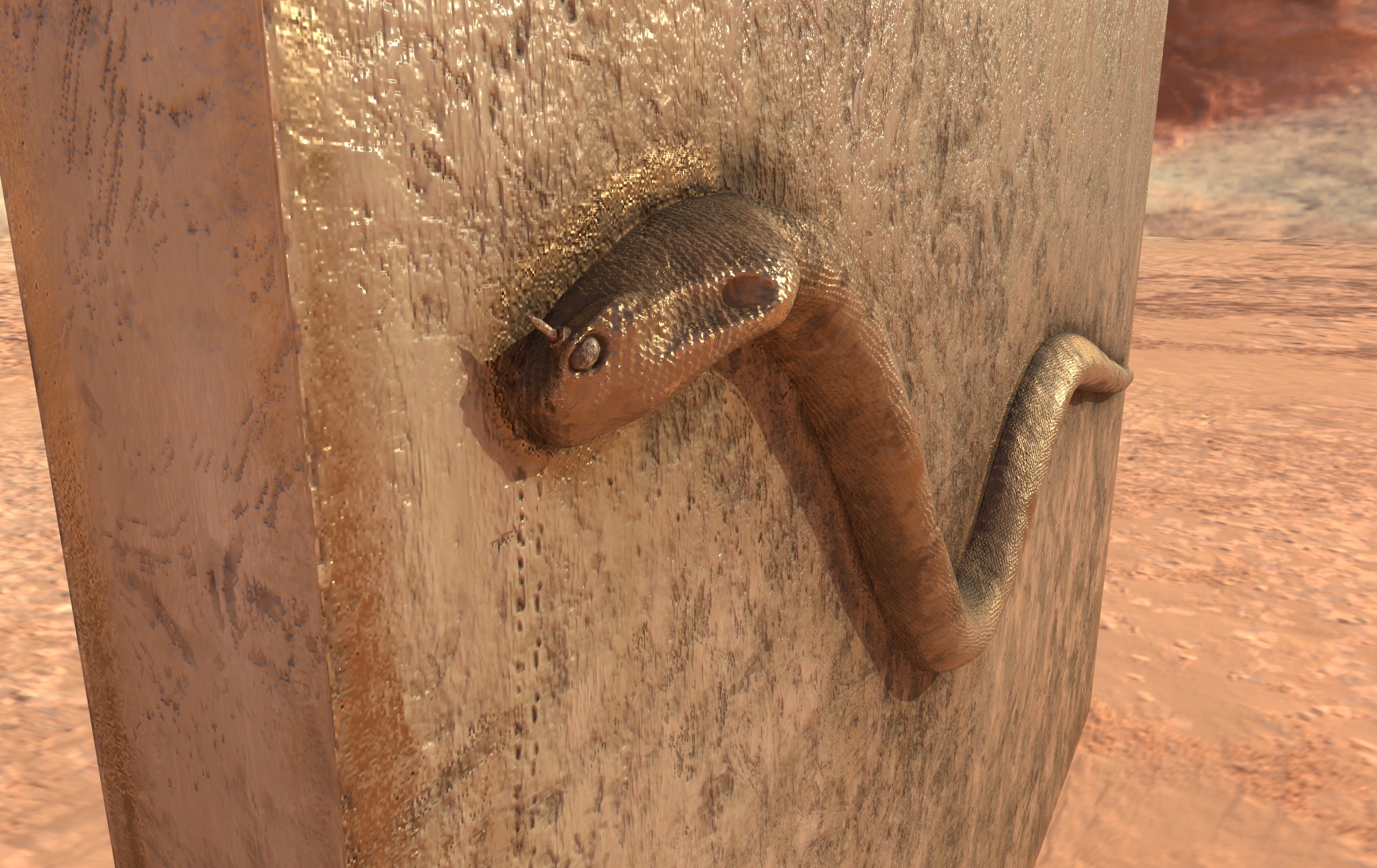 The subject in the image is a digital sculpt of a horned serpent hieroglyph.